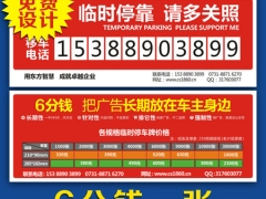 临时停车卡背面可以放公司广告,经广告主投放后评价:临时停车广告卡,车主接收、保存比例非常高,放在车上天天看到。广告效果比名片广告卡、宣传单等传统广告效果好10倍以上。并且由于车主长期保存使用,广告回报时间长,多次消费机率大,且消费金额高。